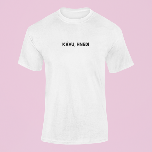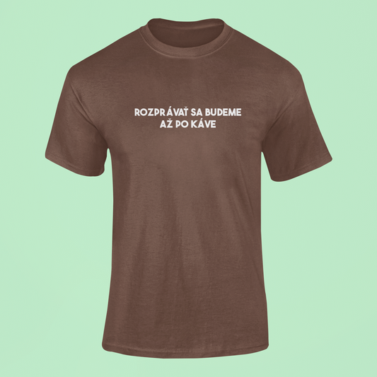 Tričko s nápisom "Rozprávať sa budeme až po káve"