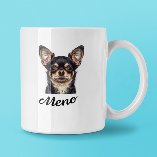 Hrnček Čivava (čierna, biela) | personalizovaný hrnček s menom psíka