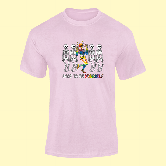 Tričko "Dare to be yourself" s dúhovou kostrou